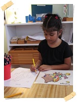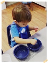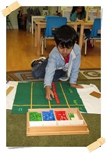 This area includes lessons in dry or water pouring, sponging, spooning, buttoning, tying, buckling, sweeping, food preparation, polishing silver, dusting, etc. The lessons allow the children to become independent in taking care of themselves and increase the awareness of their environment, concern for its upkeep and skills to maintain it. The lessons improve eye-hand coordination and fine motor skills, and are an indirect preparation for reading and writing as they are taught to go from left to right. They learn careful and controlled movement as they practice pouring without spilling. Practical life lessons range from very simple activities for the younger children to more difficult and lengthy challenges as they get older and more adept.